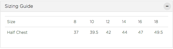 Half Chest (cm) 37 39.5 42 44 47 49.5